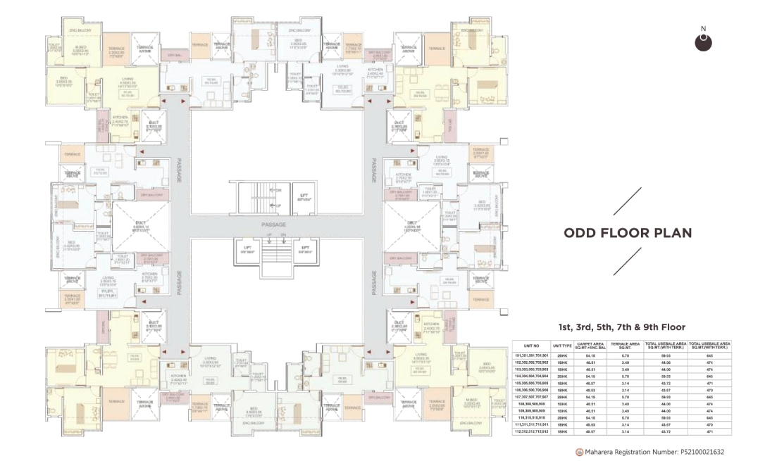 - Vitrified tiles for entire flat and antiskid tiles for terrace Ceramic tiles up to window top in kitchen Ceramic tiles up to 7' height in toilets
